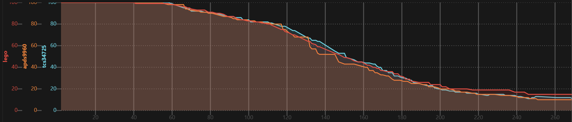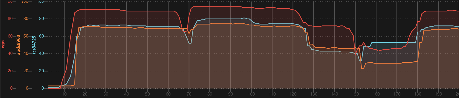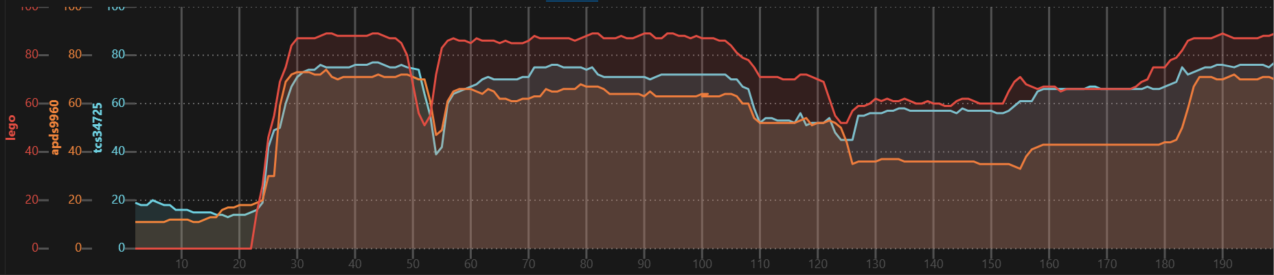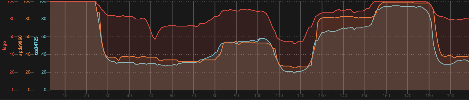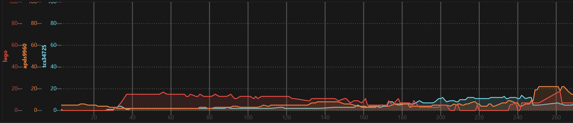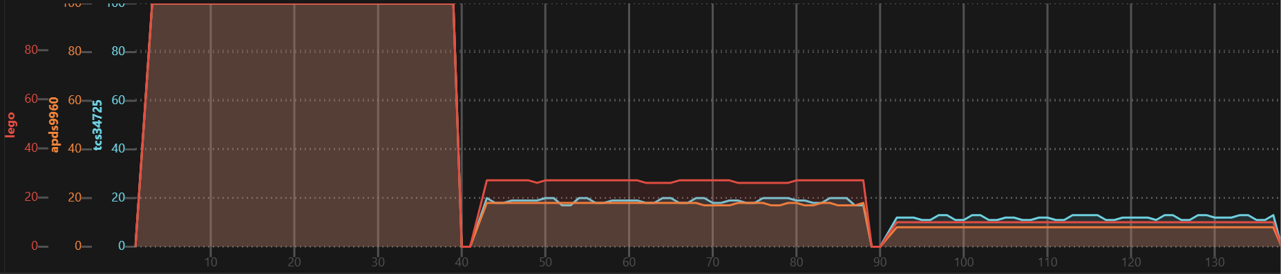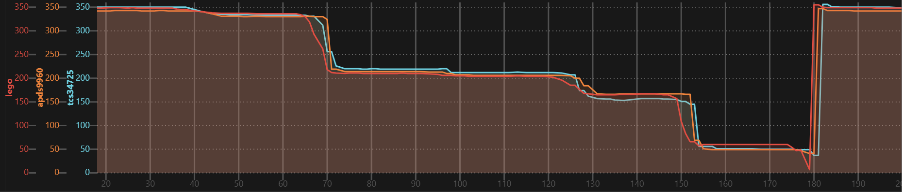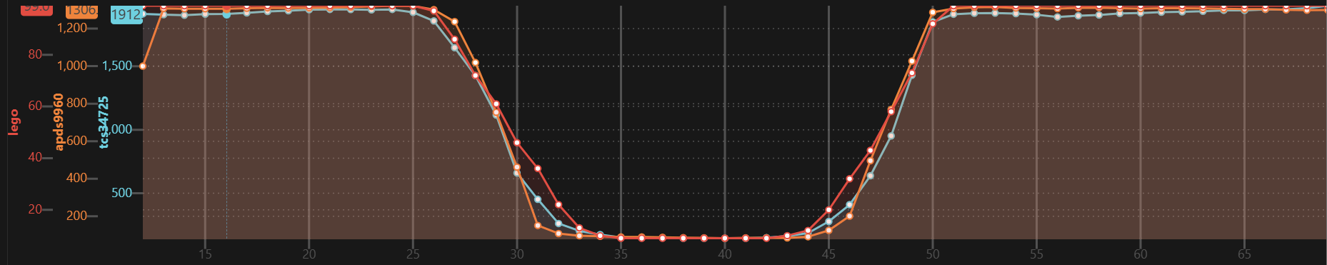 | TCS34725 | + | 15 msec | 2.4 msec steps |