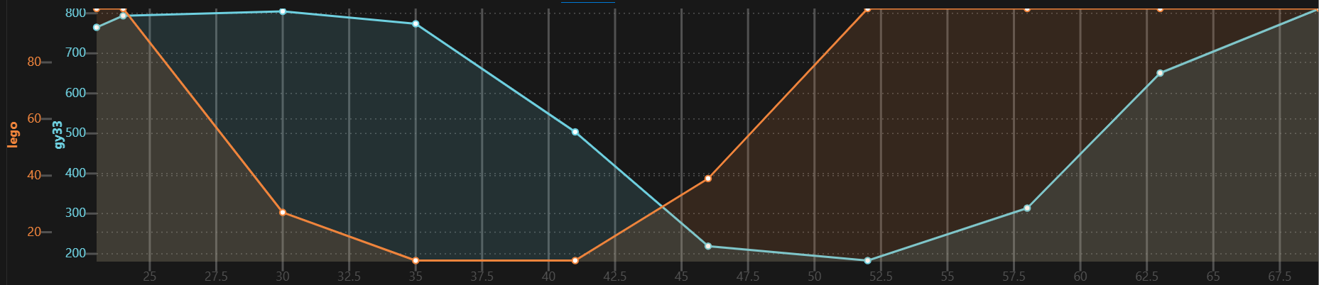 Then the lag to the Lego sensor was measured at 200 mm/sec: